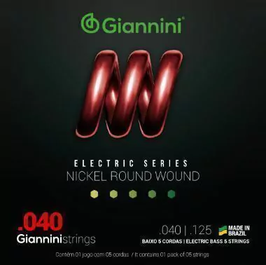 A série Electric traz toda a sonoridade dos encordoamentos Giannini para a sua guitarra e contra-baixo. O encordoamento para baixo 05 cordas Giannini GEEBRL5 é composto de um núcleo de aço revestido por Níquel. O Níquel produz um som brilhante e agressivo que atende uma grande variedades de estilos musicais, sendo bem resistente a oxidação e corrosão.